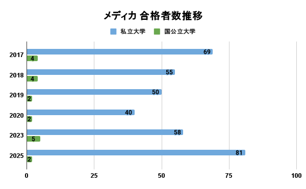 最終合格実績として公表されている2017年~2020年・2023年・2025年のデータをまとめると、以下のようなグラフになります。